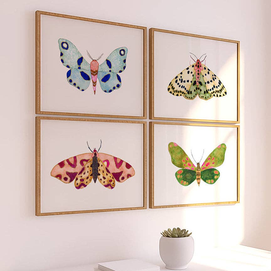 Select your size above if you'd like all four of these prints in the same size, or click here if you'd like to choose different sizes for each individual print in this set. This is a print set of four of my moth watercolor art prints that I think look fabulous together. Whether for your living room to bring a pop of vibrant color and nature, or for your lepidopterarium, this print sets will bring any room to life! I hope you love it. Some more info about my prints: These are archival fine art prints of my original watercolor paintings. All prints come unframed and in standard size options that will fit ready-made frames. Each print is made with archival pigment-based ink on beautiful quality, heavy cotton paper. Prints are thoughtfully packaged with firm backing board in a clear protective sleeve. Larger prints are shipped in a sturdy mailing tube. © Sarah Martinez Art